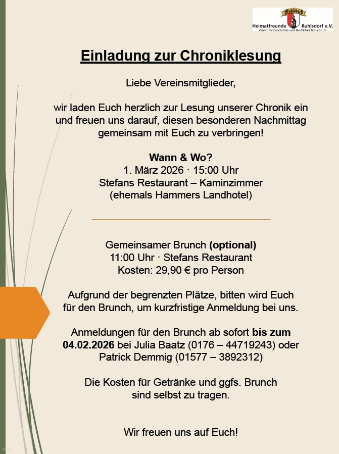 📖 Chroniklesung am 1. März 2026 📖