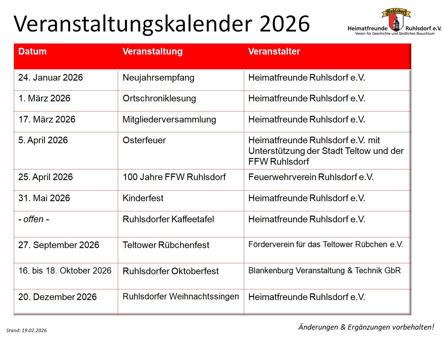 Veranstaltungskalender Hier findet Ihr unsere Veranstaltungen und die Veranstaltungen, an denen wir mitwirken. 😉